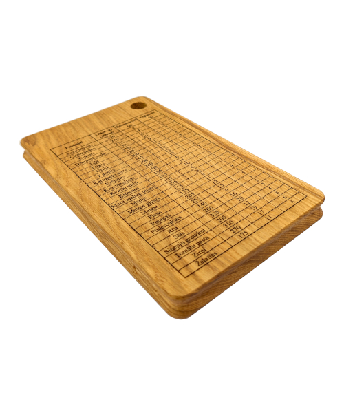 Ozolkoka dēlītis ar gravējumu “Virtuves mērvienību tabula”